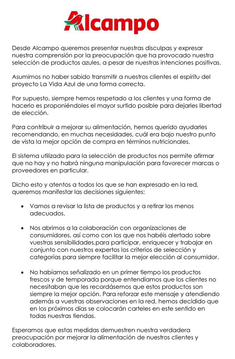 Després de l’enrenou, Alcampo, a través de Twitter, va demanar disculpes públicament als consumidors per no haver sabut transmetre l’esperit de la campanya.