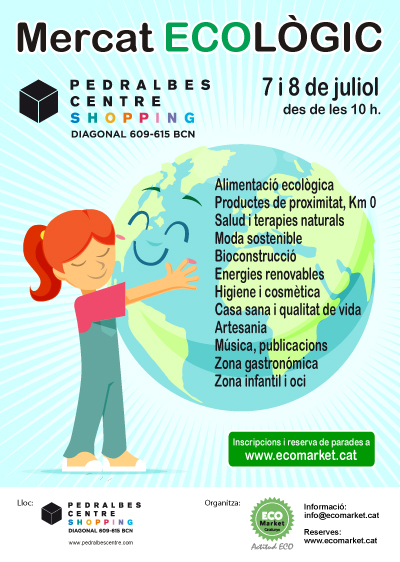 A peu de carrer, urbà, per a tots els públics i amb seccions i activitats dedicades al món de l’alimentació ecològica, productes de proximitat, salut i teràpies naturals, bioconstrucció, cosmètica natural, furgoteques, zona infantil, música, etc. El primer ECO Market de Pedralbes Centre vol ser un punt de trobada entre productors, mitjans i consumidors apassionats de la sostenibilitat, la solidaritat, el consum responsable, el mediambient, la salut, el benestar i la qualitat de vida.