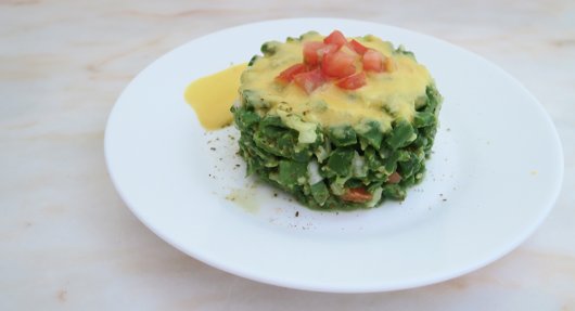 Podeu acompanyar el plat amb alguna salsa que aporti polaritat de sabors i de colors, com la salsa d’alvocat i oli de peix a la llimona, la salsa de cúrcuma i lli o la salsa agredolça d’umeboshi.