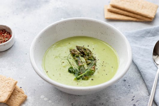 Una sopa freda, dolça i àcida alhora, refrescant i saciant amb aportació de vegetals crus que la converteix en una recepta sinònim de frescor i vitamines i amb un rajolí de suc de llima, llet de coco i una mica de picant.