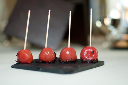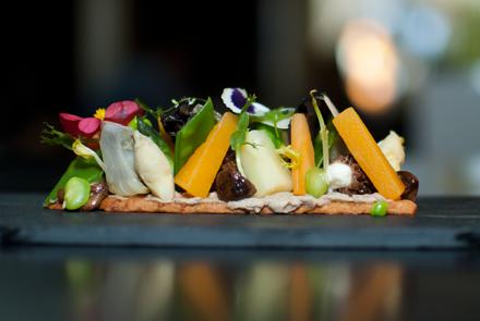 Tornem al Moo. El cruixent de martini i un tomàquet confitat amb vodka són els primers aperitius d’un menú que degustarem a poc a poc, seguit d’un petit bol amb crema de pèsols i espàrrecs impressionant, macarrons amb pesto i un deliciós chop suey de verdures. El primer plat pròpiament dit és el més colorista i vistós del menú: la coca de parmesà amb verduretes. “Les verdures i les flors són de l’hort que cultivo al pati interior de l’Hotel”. M’ho explica en Felip Llufriu que fa dos anys va decidir instaurar el menú vegetarià a la carta arran de la gran demanda que li feien els clients anglesos i americans allotjats a l’hotel. “Ells estan molt acostumats a trobar aquesta oferta als seus països i sempre que em demanaven un plat vegetarià havíem d’improvisar a corre-cuita una amanida o algun plat sense carn ni peix”.